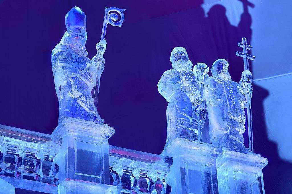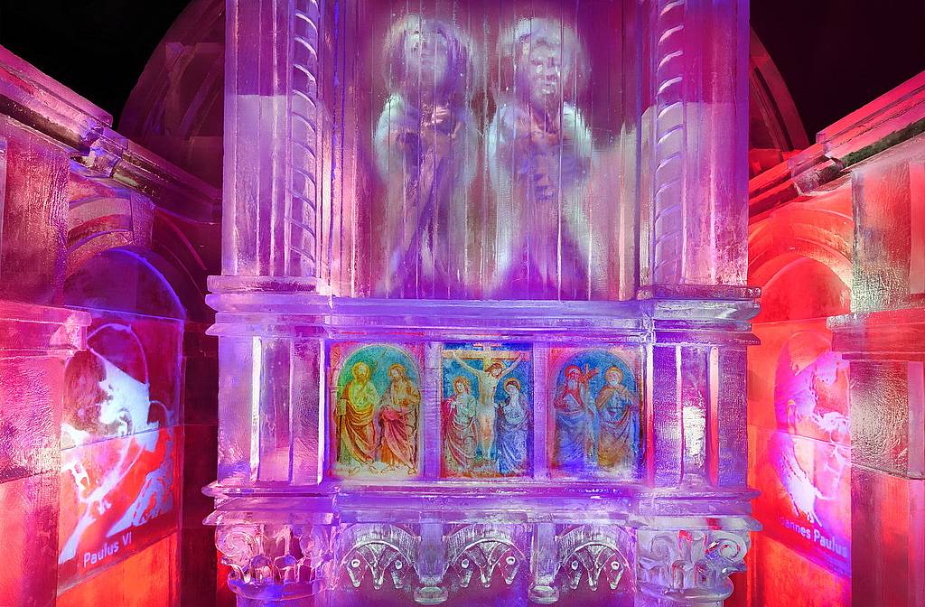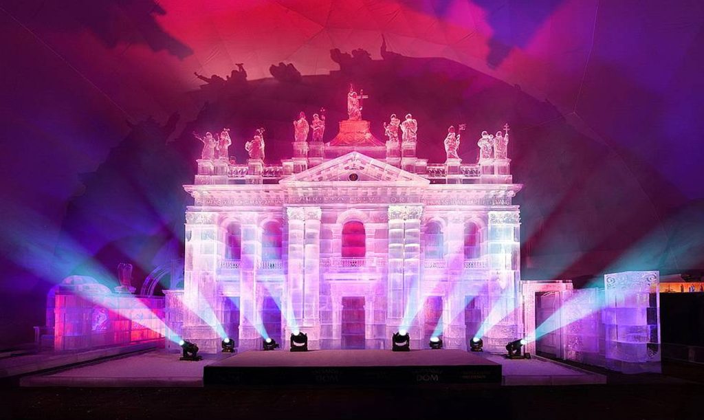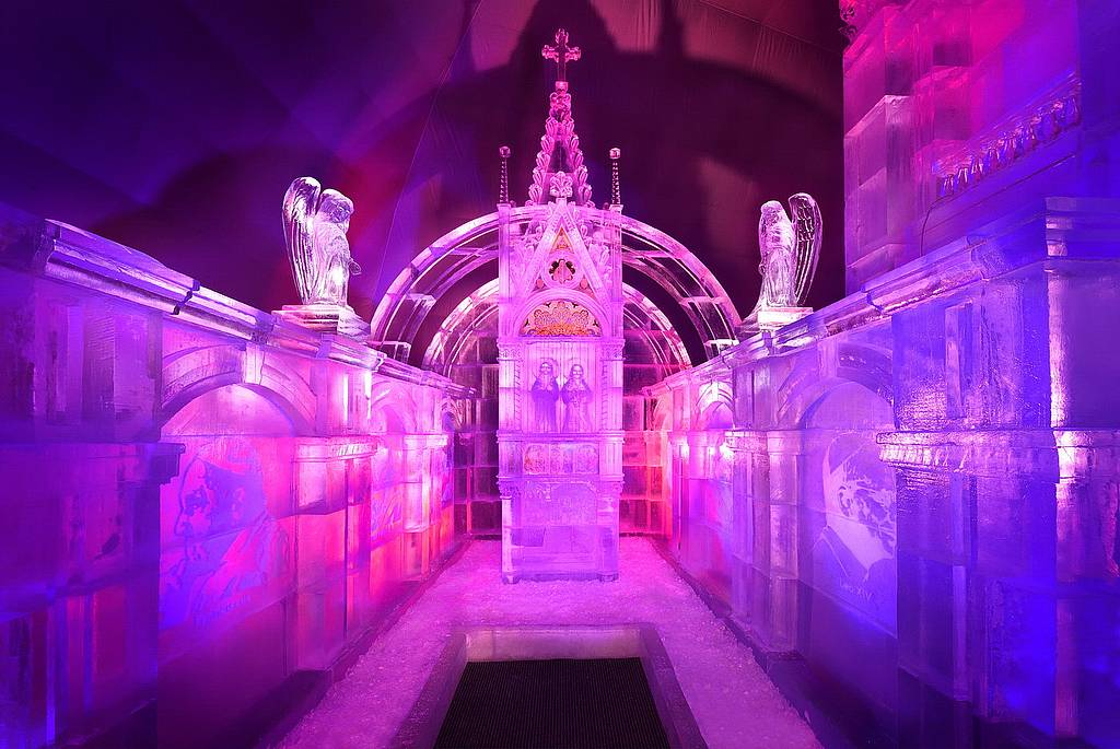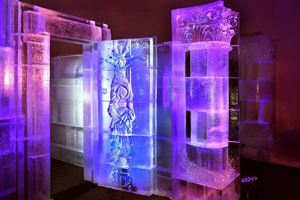 Скульпторы из Словакии, Чехии, Польши и Германии в течение целого месяца вырезали купол, стены, внутреннее убранство, фигуры апостолов и даже барельефы, украшающие интерьер. На создание сооружения ушло 225 тонн льда.