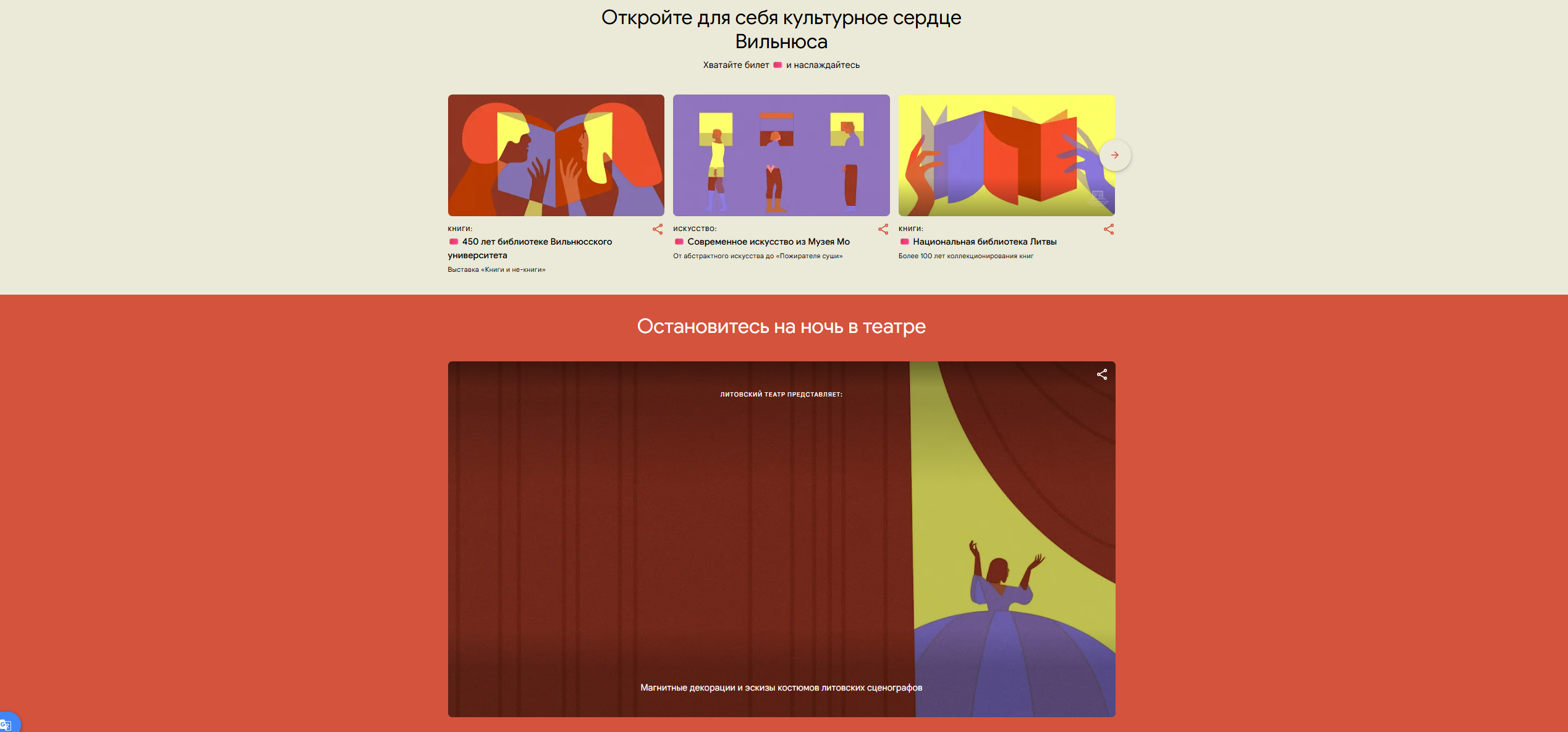 В путеводитель Visit Vilnius, созданный совместно с 11 крупнейшими музеями и культурными центрами города, вошло более 80 виртуальных выставок и свыше 2000 экспонатов. Проект позволяет пользователям со всего мира ближе познакомиться с культурой и наследием Вильнюса, а также прогуляться по музеям, галереям и улицам старого города, внесенного в список ЮНЕСКО.